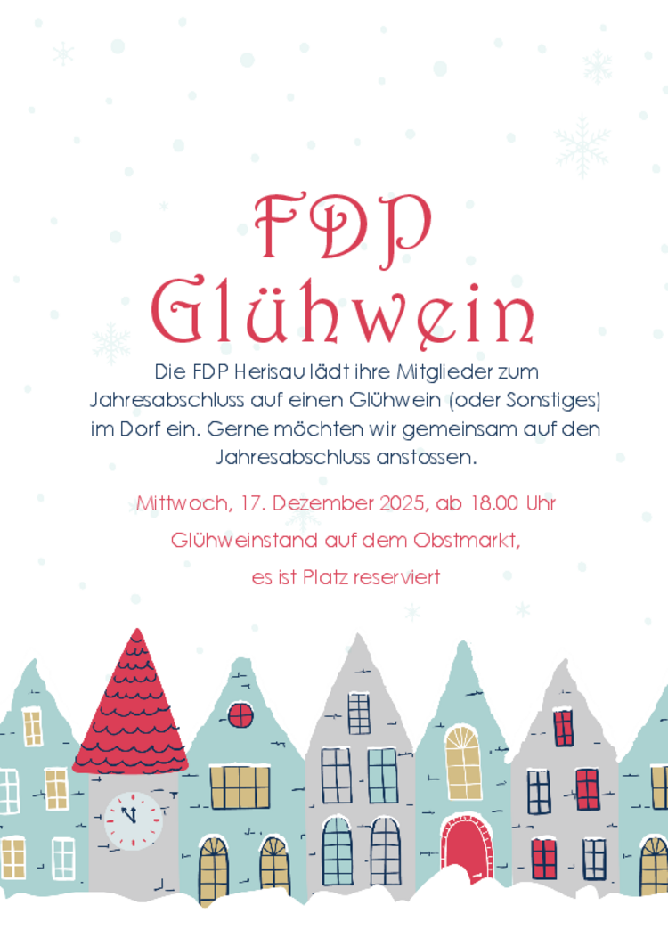 Mitte Dezember lädt die FDP Herisau ihre Mitglieder zum Glühwein im Dorf ein.